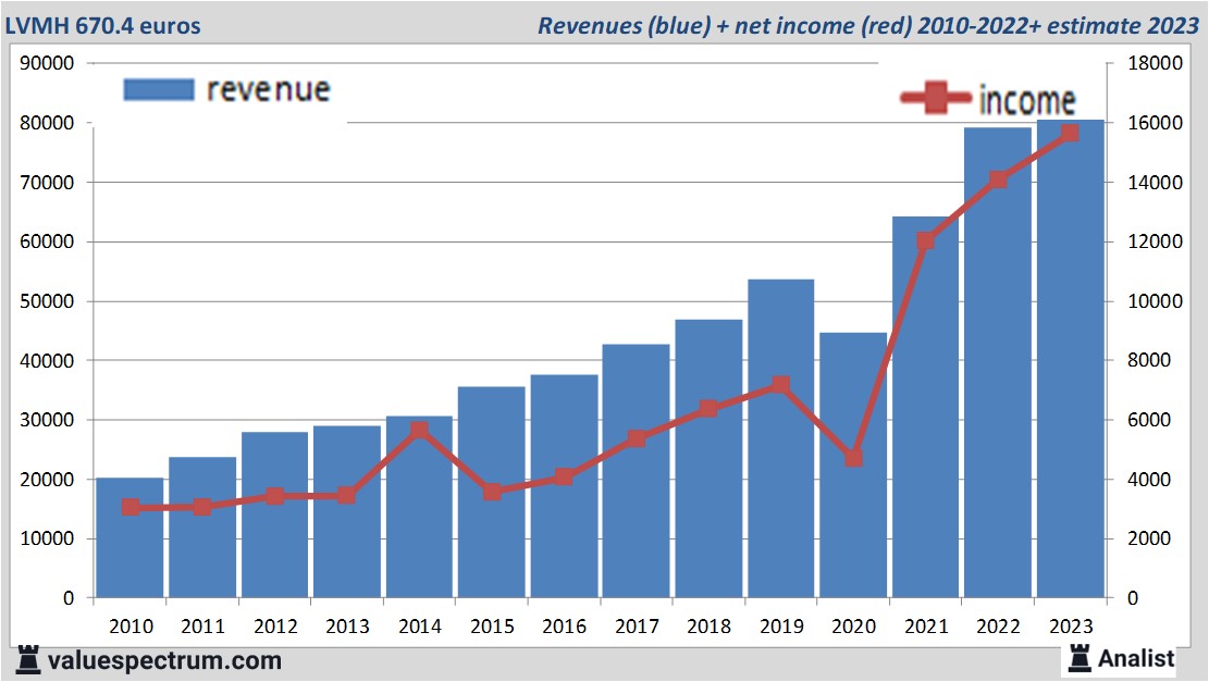 Morgen publiceert het Franse LVMH haar resultaten over het voorbije kwartaal. De omzet van het bedrijf uit over dit jaar komt uit op 85.63 miljard euro. Zo blijkt uit gemiddelde analistenverwachting. De omzet zou volgens de analisten dit jaar zodoende het hoogste in haar bestaan zijn. Dit is vrij beperkt meer dan de omzet over 2022 toen het bedrijf 79.18 miljard euro binnen kreeg.