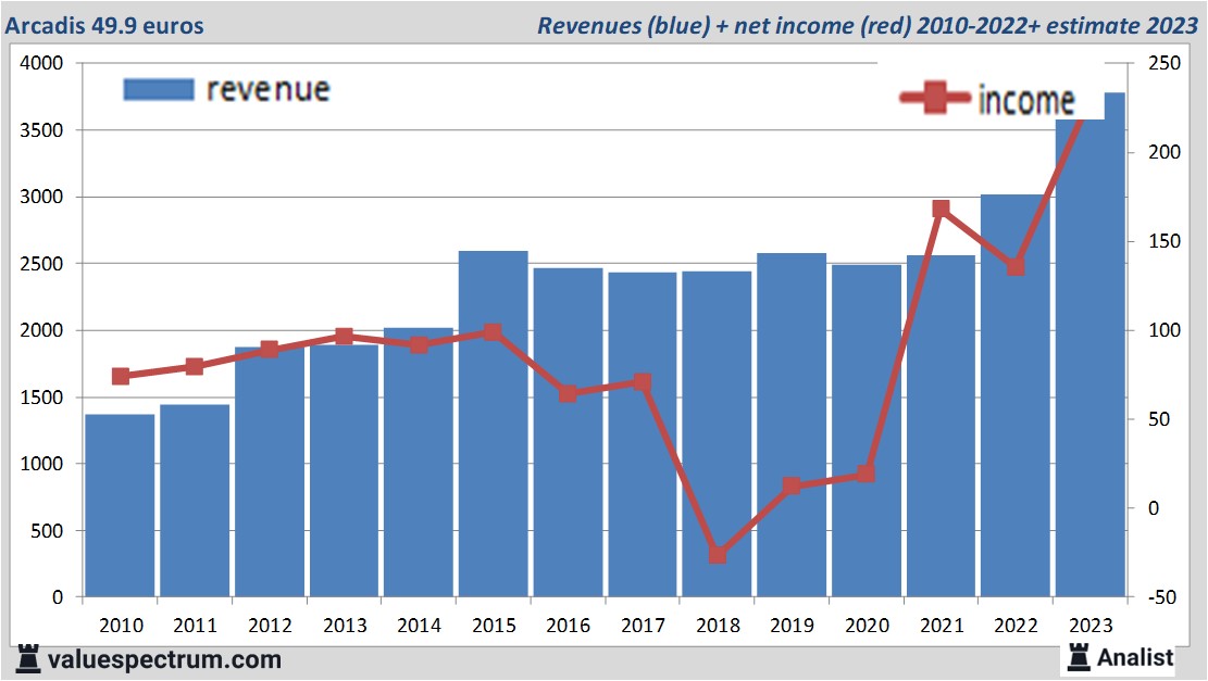 Morgen zal het Nederlandse Arcadis haar cijfers over het afgelopen kwartaal aan de pers melden. Over het huidige boekjaar komt de omzet van het bedrijf uit volgens de analisten uit op 3.78 miljard euro. De totale omzet zou volgens de analisten dit jaar dan het hoogste in haar bestaan zijn. Dit is behoorlijk meer dan de omzet over 2022 toen het concern 3.02 miljard euro verdiende.
