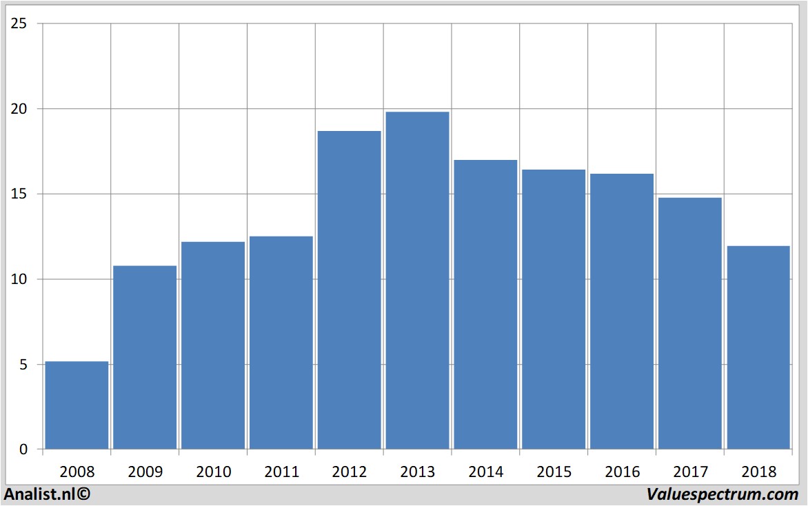 De meeste analisten rekenen voor 2018 op een nettowinst van 26 miljoen euro. Over dit jaar wordt door het gros van de analisten een winst per aandeel van 52 cent verwacht. De koerswinstverhouding komt zodoende uit op 23,04.