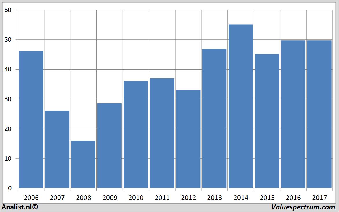 Wat betreft het resultaat rekenen de analisten op een nettowinst van 285 miljoen euro. Over dit jaar koerst het bedrijf volgens de analisten af op een winst per aandeel van 2,46 euro. Op basis hiervan komt de koerswinstverhouding op 20,18 te liggen.