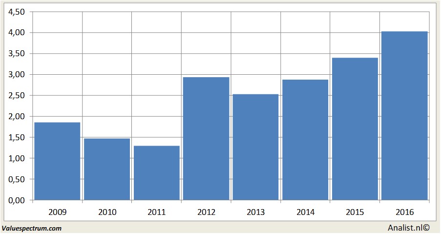 De analisten rekenen voor 2016 op een nettowinst van 12 miljoen euro. Voor dit jaar ligt de consensus van het resultaat per aandeel op een winst van 83 cent. De koerswinstverhouding bedraagt hierdoor 20,96.