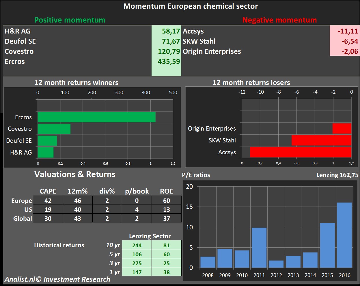Gemiddeld kost de sector nu 36 maal de winst per aandeel. De sector noteert op 2,45 maal de boekwaarde per aandeel. Sinds 2012 heeft de sector een winst van ruim 60 procent en sinds 2007 een winst van 81 procent. Op basis van de analistentaxaties zouden zowel de omzet als het nettoresultaat op het hoogste niveau in jaren uitkomen. De omzet van Lenzing over dit jaar komt uit op 2,33 miljard euro. Zo blijkt uit gemiddelde analistenverwachting. De omzet zou volgens de analisten dit jaar dan het hoogste in haar bestaan zijn. Dit is beperkt meer dan de omzet over 2015 toen het bedrijf 2,13 miljard euro verdiende.