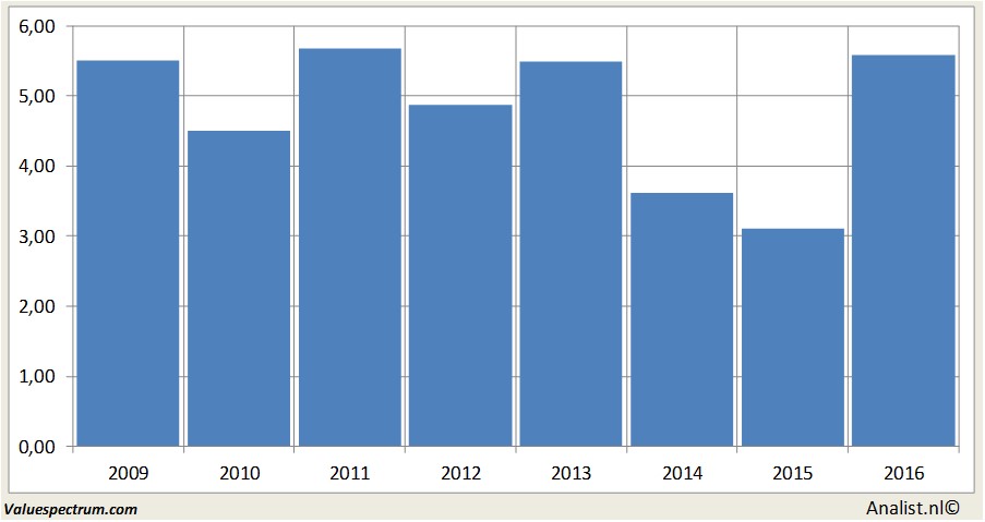 De gemiddelde verwachting van de omzet over dit jaar ligt volgens de analisten op 320,95 miljoen euro. Dit is licht meer dan de omzet over 2016 toen de omzet 320,43 miljoen euro bedroeg.
