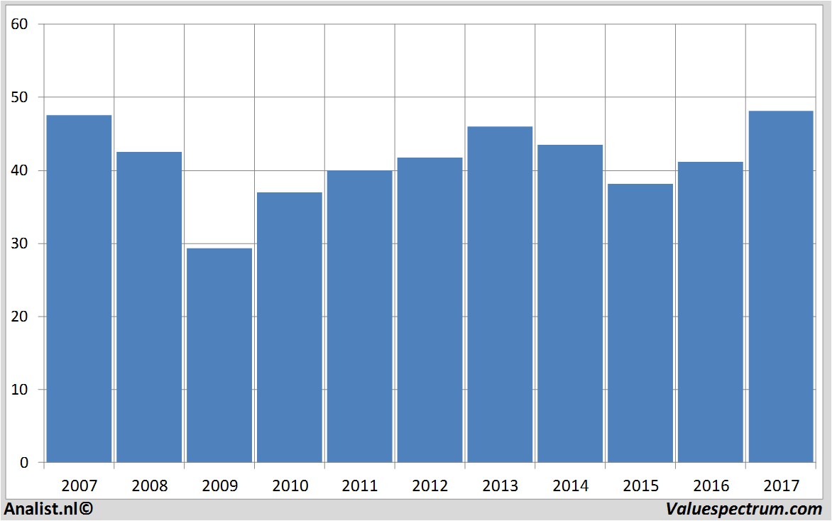 De analisten gaan voor 2017 uit van een nettowinst van 1,02 miljard dollar. Over dit jaar ligt de consensus van Loews 's resultaat per aandeel op een winst van 3,13 dollar. Op basis hiervan komt de koers/winstverhouding op 15,37 te liggen.