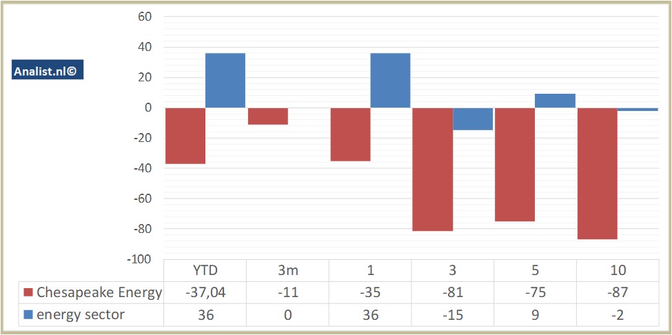Buy & hold rendementen aandeel Chesapeake Energy over diverse periodes, exclusief dividendrendementen
