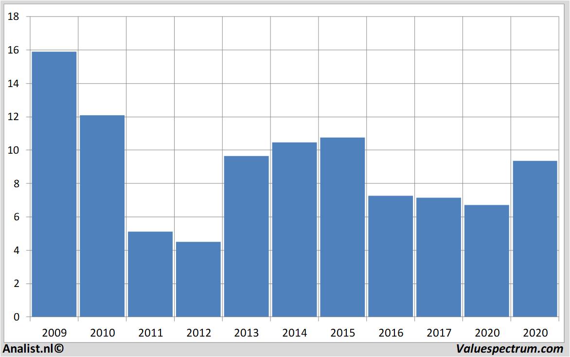 De meeste analisten gaan voor 2020 uit van een nettowinst van 100 miljoen euro. Volgens de jongste analistenconsensus houdt het bedrijf over dit jaar een winst per aandeel van 43 cent over. De koers/winstverhouding komt hiermee op 21,79 te liggen.
