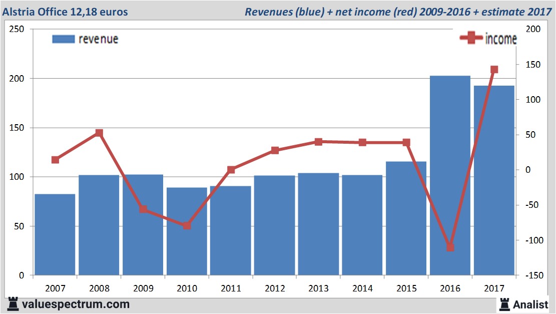 Morgen opent het Duitse Alstria Office haar boeken over het afgelopen kwartaal. De omzet van Alstria Office over dit jaar komt uit op 192,45 miljoen euro. Zo blijkt uit gemiddelde analistenverwachting. Dit is licht minder dan de omzet over 2016 toen de omzet 202,66 miljoen euro bedroeg.