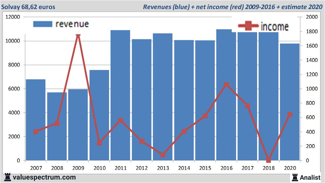 Morgen zal het Belgische Solvay haar resultaten over het afgelopen kwartaal bekend maken. Over dit jaar komt de omzet volgens de analisten uit op 9,78 miljard euro. Dit is fors minder dan de omzet over 2018 toen het concern 11,23 miljard euro verdiende.
