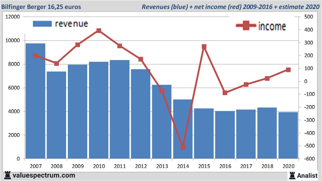 Morgen publiceert het Duitse Bilfinger Berger Berger haar resultaten over het afgelopen kwartaal. Over dit jaar komt de omzet volgens de analisten uit op 3,94 miljard euro. Dit is vrij beperkt minder dan de omzet over 2018 toen het bedrijf 4,33 miljard euro verdiende.