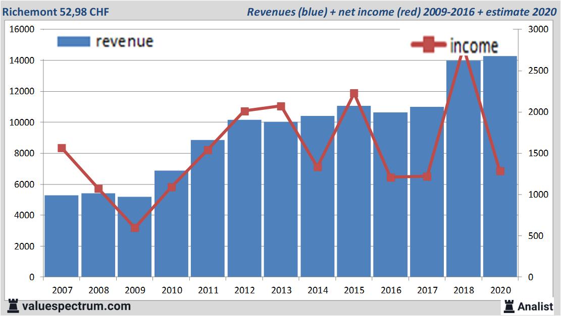 Morgen presenteert het Zwitserse Richemont haar resultaten over het afgelopen kwartaal. De omzet van Richemont over dit jaar komt uit op 14,27 miljard CHF. Zo blijkt uit gemiddelde verwachting van de analisten. Dit is beperkt meer dan de omzet over 2018 toen de omzet 13,99 miljard CHF bedroeg.