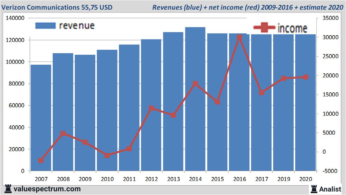 Klikt u hier voor dividend aandeel Verizon Communications. Het aandeel sloot maandag op 55,75 dollar.