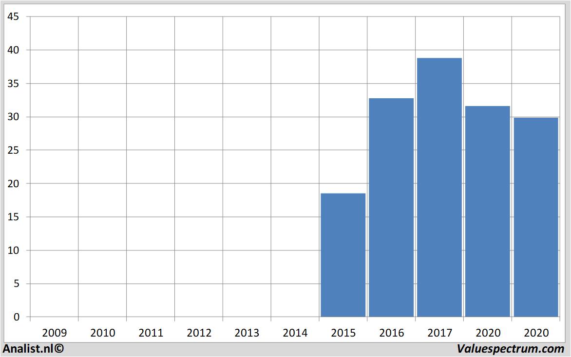 De analisten gaan voor 2020 uit van een nettowinst van 626 miljoen euro. Over dit jaar houdt het bedrijf volgens de analisten een winst per aandeel van 4,39 euro over. De koerswinstverhouding bedraagt hierdoor 6,81.