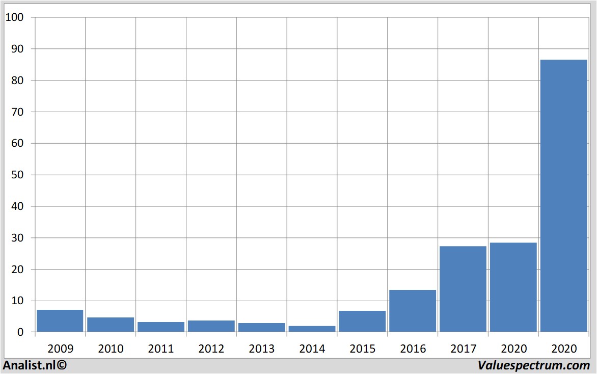 Wat betreft het resultaat rekenen De meeste analisten op een nettowinst van 1,35 miljard dollar. Over dit jaar wordt door het gros van de analisten een winst per aandeel van 1,1 dollar verwacht. Op basis hiervan komt de koerswinstverhouding op een zeer royale 78,65 uit.