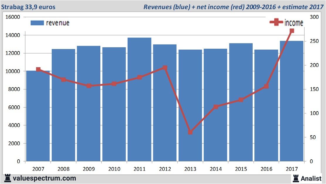 Morgen presenteert het Oostenrijkse Strabag haar resultaten over het afgelopen kwartaal. Over 2017 komt de omzet volgens de analisten uit op 13,38 miljard euro. Dit is licht meer dan de omzet over 2016 toen de omzet 12,4 miljard euro bedroeg.