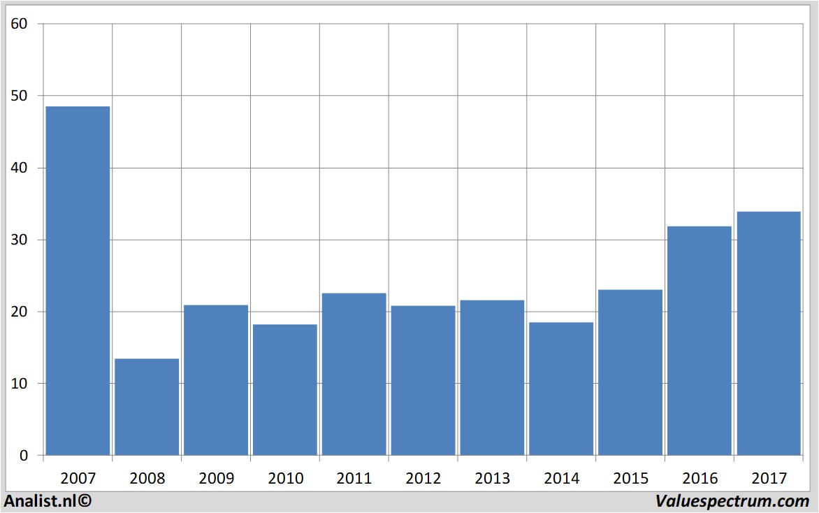De meeste analisten anticiperen voor 2017 op een recordnettowinst van 271 miljoen euro. Over dit jaar wordt door het gros van de analisten een winst per aandeel van 2,63 euro verwacht. Zodoende komt de koerswinstverhouding op 12,89 uit.