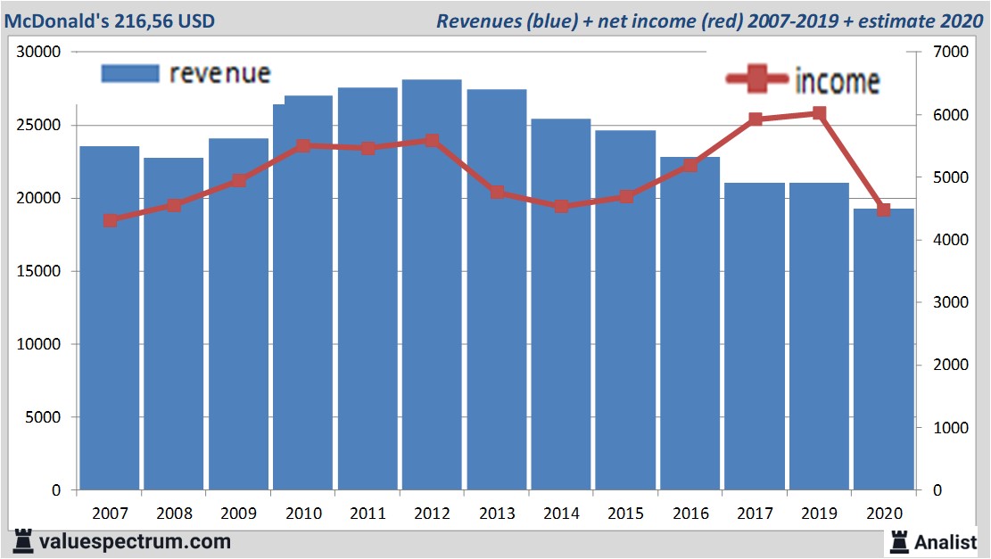 Per aandeel wordt door de analisten een dividend van 5,07 dollar verwacht. Het dividendrendement van McDonald's ligt hiermee op 2,34 procent. Het gemiddelde dividendrendement van de horecasector ligt op een summiere 0,13 procent. Het is de verwachting dat het bedrijf op 30 november een dividend van 1,29 dollar uit zal gaan keren.