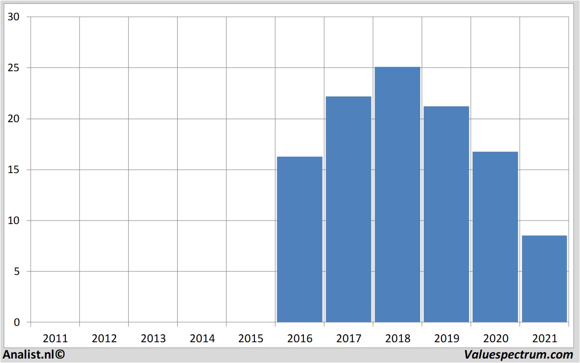 De meeste analisten gaan voor 2020 uit van een nettoverlies van 160 miljoen euro. Volgens de laatste rondgang langs de analisten stevent het bedrijf af op een verlies per aandeel van 21 cent. De koers/winstverhouding komt hiermee op -40.52 te liggen.