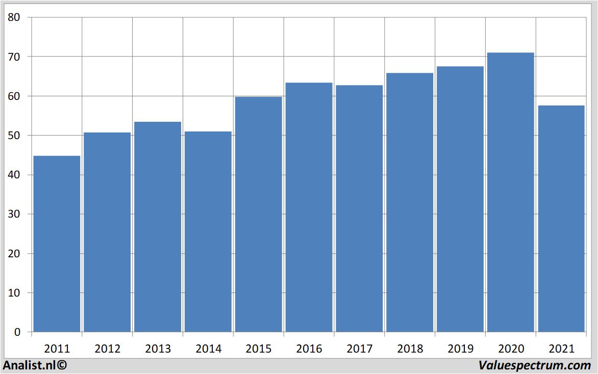 Onderaan de streep rekenen de analisten op een nettowinst van 2.11 miljard euro. Voor dit jaar ligt de consensus van het resultaat per aandeel op een winst van 3.26 euro. Zodoende komt de koerswinstverhouding op 17.14 uit.