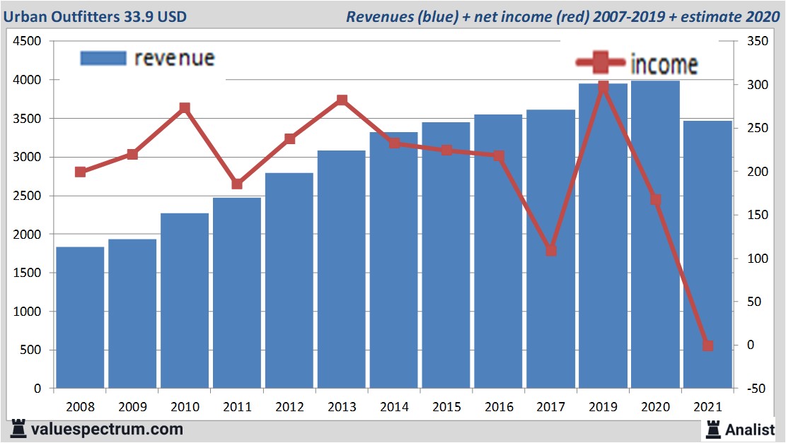 Morgen presenteert het Amerikaanse Urban Outfitters haar resultaten over het afgelopen kwartaal. Over het lopende jaar ligt de consensus van de omzet van het bedrijf uit Philadelphia op 3.46 miljard dollar. Dit is aanzienlijk minder dan de omzet over 2020 toen het bedrijf 3.98 miljard dollar verdiende.