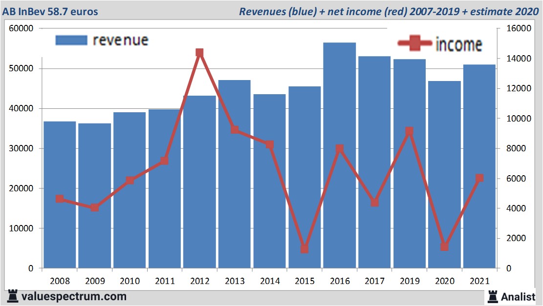 Morgen komt het Belgische AB AB InBev met haar resultaten over het afgelopen kwartaal naar buiten. Over het huidige boekjaar komt de omzet van het bedrijf uit Leuven (Louvain) volgens de analisten uit op 51.01 miljard euro. Dit is licht meer dan de omzet over 2020 toen het concern 46.88 miljard euro verdiende.