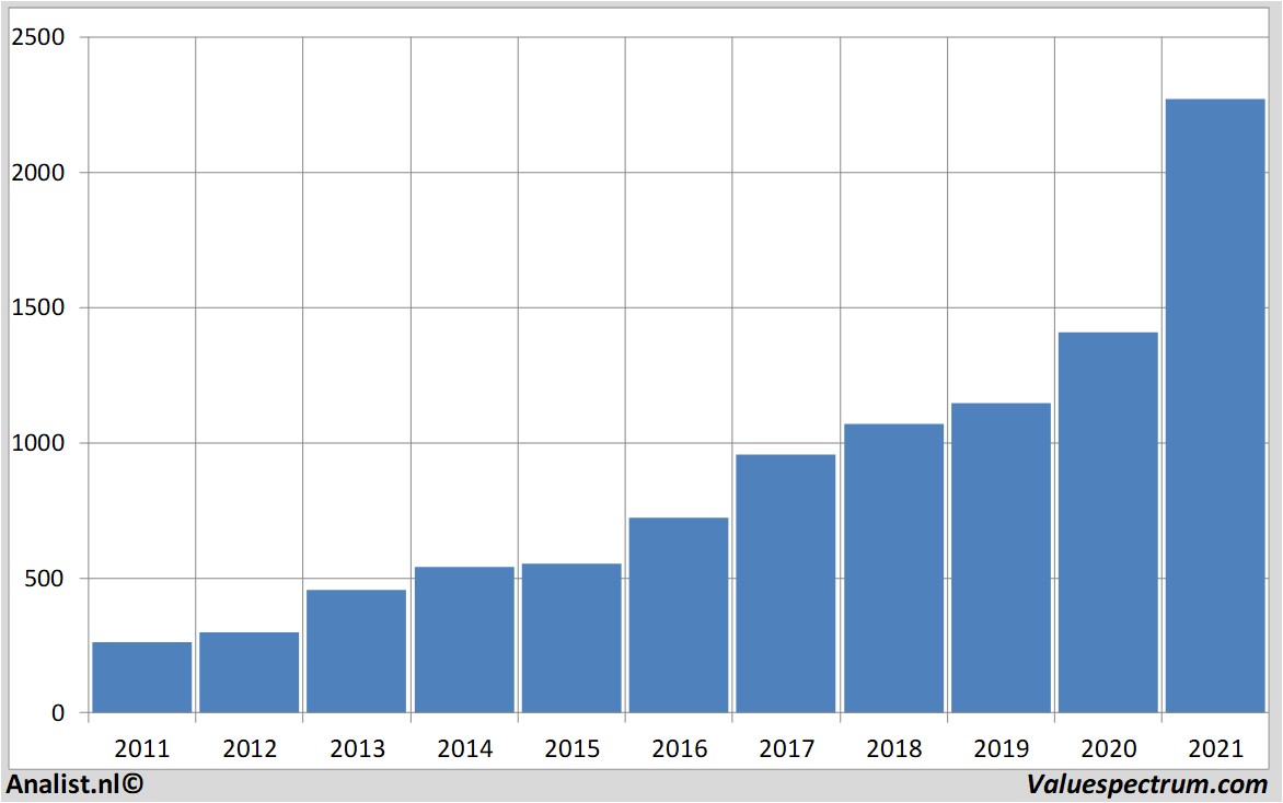 De marktkapitalisatie bedraagt op basis van het aantal uitstaande aandelen keer de beurskoers circa 681.06 miljard dollar. Het aandeel was de voorbije 12 maanden vrij volatiel. Sinds een jaar terug staat het aandeel maar liefst 61 procent in de plus. Het aandeel koerste het laatste jaar tussen de 1352 en de 2431 dollar.