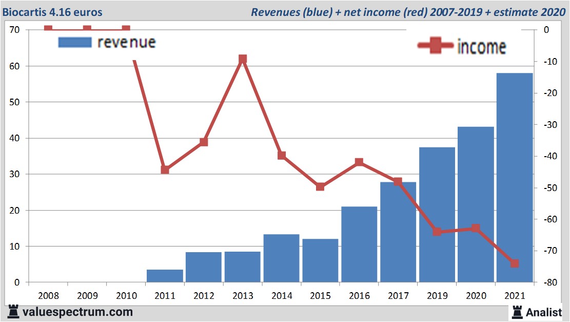 Wat betreft het resultaat rekenen De meeste analisten op een nettoverlies van 74 miljoen euro. Volgens de laatste rondgang langs de analisten stevent het bedrijf af op een verlies per aandeel van 1.27 euro. Hiermee komt de koers/winst-verhouding op -3.28 te liggen.