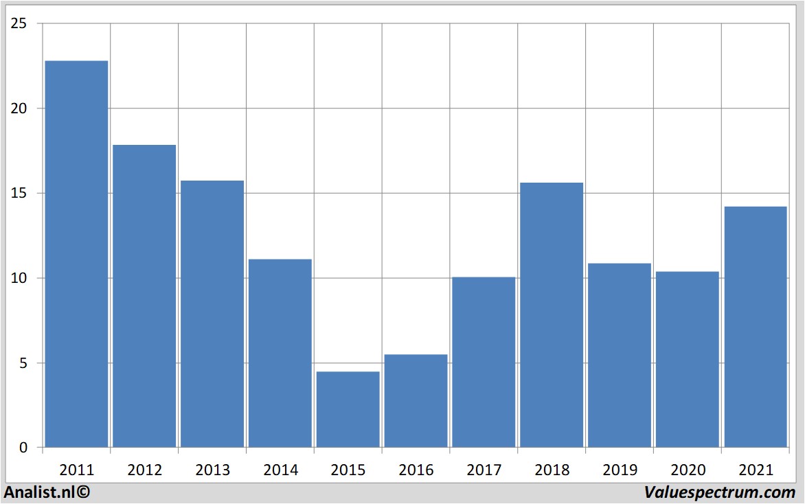 De meeste analisten rekenen voor 2021 op een nettowinst van 25.68 miljard dollar. Over dit jaar houdt het bedrijf volgens de analisten een winst per aandeel van 5.2 dollar over. De koers/winstverhouding komt hiermee op 2.73 te liggen.