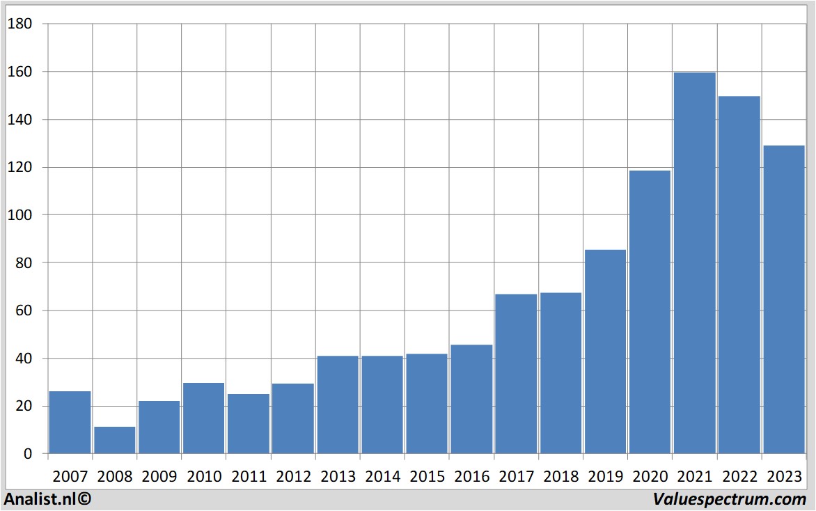 De meeste analisten rekenen voor 2023 op een nettowinst van 1.69 miljard dollar. Volgens de laatste rondgang langs de analisten stevent het bedrijf af op een winst per aandeel van 5.69 dollar. De koerswinstverhouding komt zodoende op 22.69 te liggen.