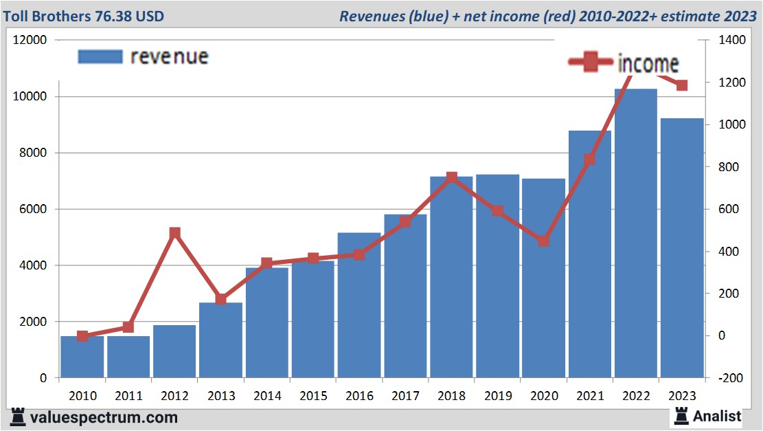 Toll Brothers zal morgen haar boeken over het afgelopen kwartaal aan de pers presenteren. Over het lopende jaar ligt de consensus van de omzet van het bedrijf uit op 9.21 miljard dollar. Dit is behoorlijk minder dan de omzet over 2022 toen het concern 10.28 miljard dollar verdiende.