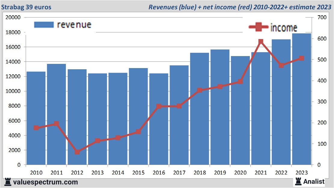 Morgen opent het Oostenrijkse Strabag haar boeken over het afgelopen kwartaal. Over het lopende jaar ligt de consensus van de omzet van het bedrijf uit op 17.83 miljard euro. De totale omzet zou volgens de analisten dit jaar dan het hoogste in haar bestaan zijn. Dit is beperkt meer dan de omzet over 2022 toen het concern 17.03 miljard euro verdiende.
